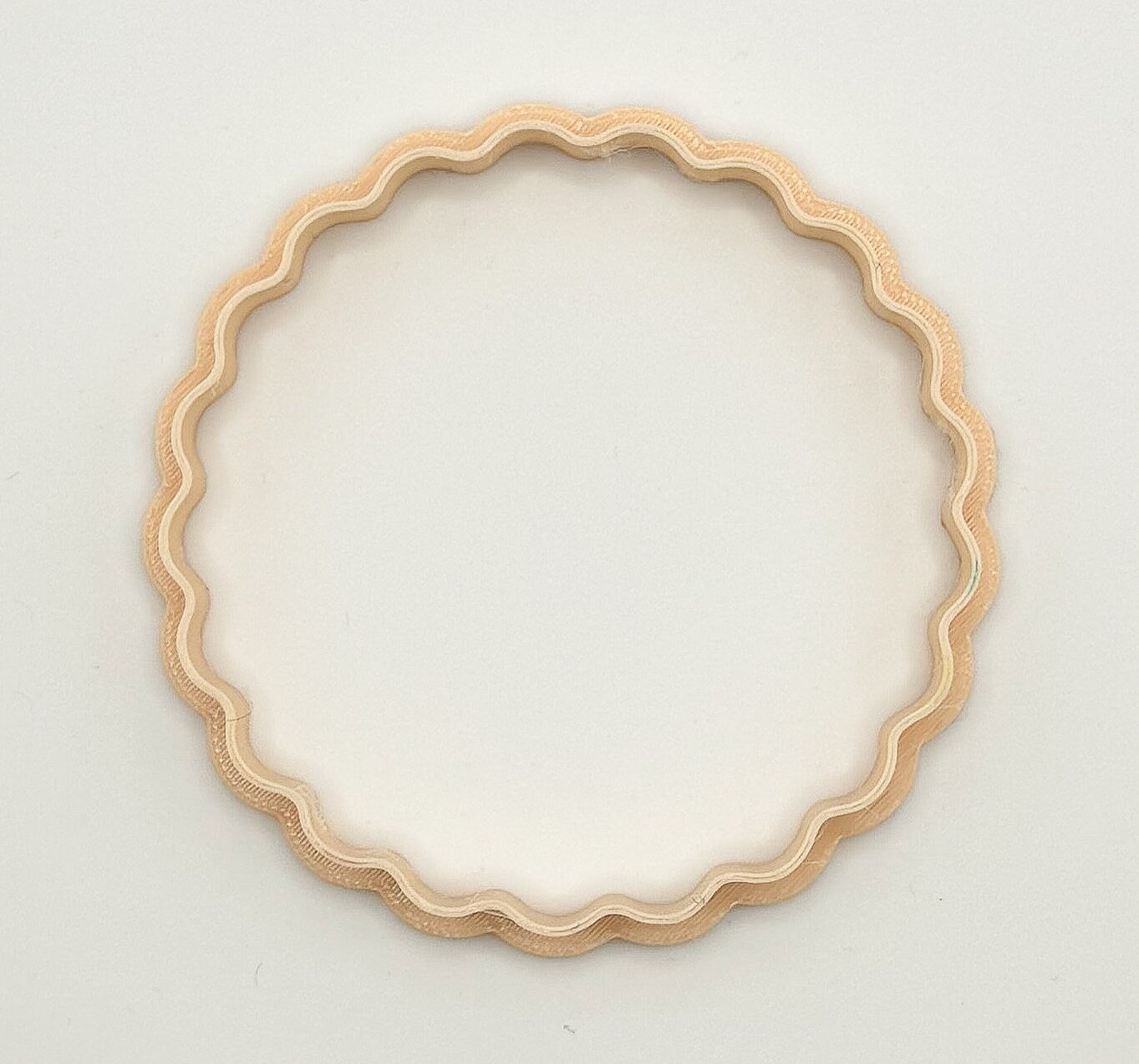 The Standard Size for our Fondant stamps is 7.5cm the actual writing and design has a final press depth of 5mm, which can be adjusted on your specific demands. The cookie cutter part has a standard size of 7.8cm.